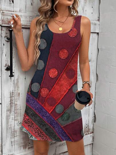 EMERY ROSE Vestido de mujer informal con cuello redondo y estampado en toda la prenda adecuado para el verano - Multicolor - Añade 1