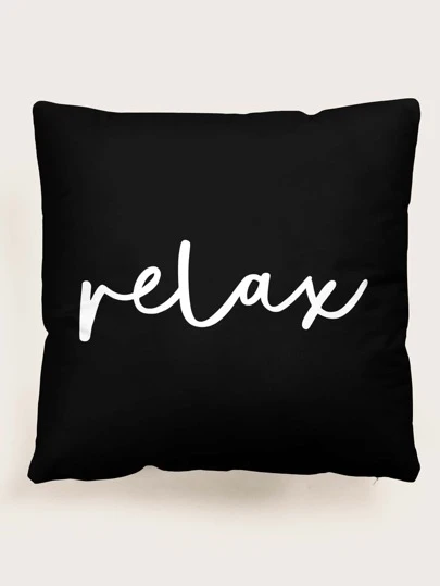 Funda de cojín sin relleno con estampado de letra - Blanco y Negro - Añade 4