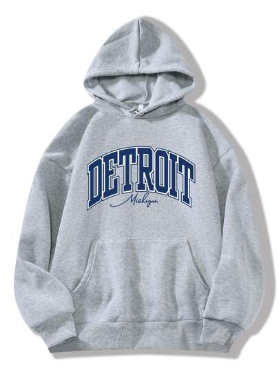 INAWLY Sudadera con capucha térmica con bolsillo canguro con cordón y estampado de letras, top de manga larga - Gris Claro - Añade 8