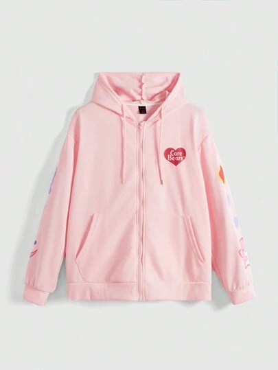 ROMWE X Care Bears Capucha Con Cremallera Delantera Estampada Con Corazón De Letras - Rosa - Añade 4