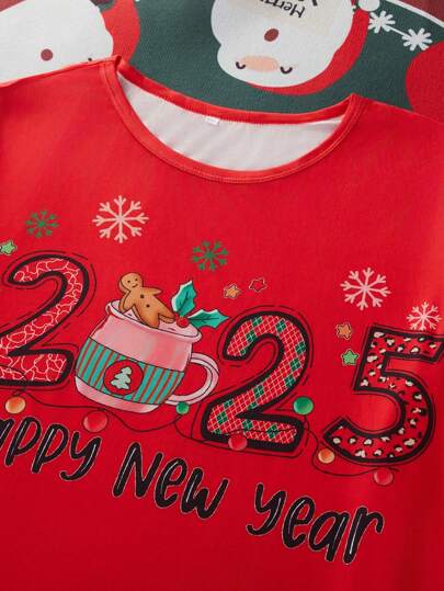 CoupledUp Conjunto de pijama con estampado de letras de manga corta y pantalón largo a cuadros para hombres, para Navidad - Multicolor - Añade 2