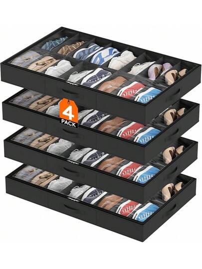 Juego de 2 organizadores de almacenamiento de zapatos debajo de la cama Lifewit, caja de tela para zapatos de perfil bajo de 4.3 pulgadas de altura con tapa transparente, bolsa de almacenamiento plegable con 2 asas, capacidad total para 24 pares de zapatos