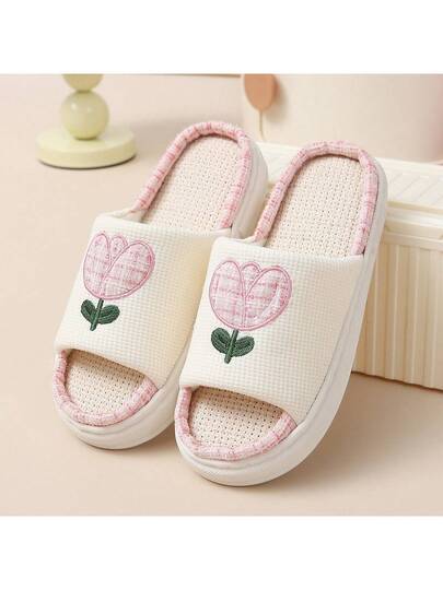 Zapatillas de lino para hombres, interiores silenciosas, transpirables, que absorben la humedad, antideslizantes y resistentes a los olores, hechas de lino, apropiadas también para mujeres en primavera y otoño - Rosa - Añade 1