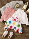 SHEIN Elladie kids Sudadera de manga larga de punto con estampado digital de corazones coloridos, cómoda y linda para niñas, casual para otoño