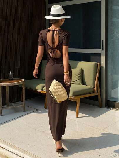 Livesso Vestido ajustado con cordones y espalda descubierta para carnaval para mujeres - Marron oscuro - Añade 6