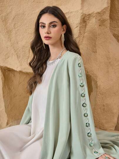Al Najma Bata suelta estilo Abaya árabe para mujeres con bordado de cuentas, modesta - Verde - Añade 1