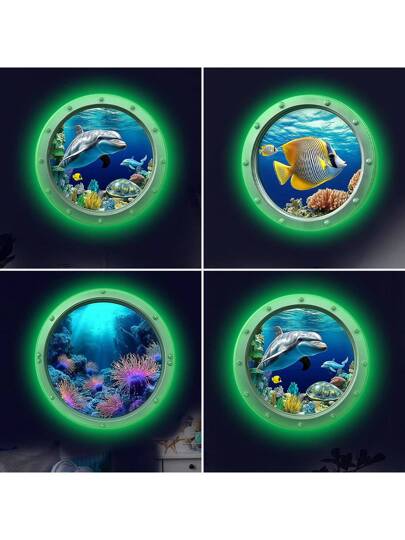 1 pieza Adhesivo de pared de delfín 3D brillante en la oscuridad, papel mural subacuático extraíble y adhesivo para decoración del hogar, regalo, cumpleaños, graduación, habitación, baño, refrigerador, decoración de pared, sala de estar, dormitorio, casa - Verde - Añade 4