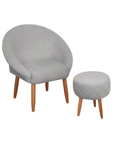 MOBLAN DECOR Set Of 1 Armchair And 1 Cozy Pouffe For Reception Comfortable Velvet Fabric Reinforced Wooden Feet - Gris - Añade 3