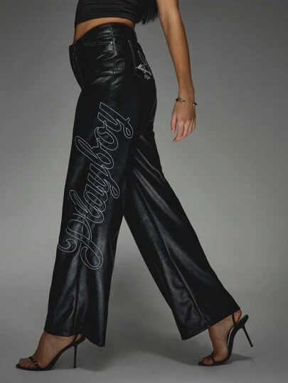 Missguided x Playboy Pantalones de pierna ancha con costuras de contraste para uso en la oficina - Negro - Añade 3