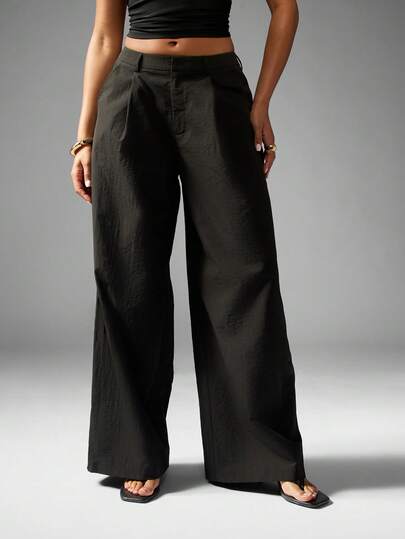 MISSGUIDED Pantalones palazzo de pierna ancha de cintura alta con sensación de lino, elegante vestimenta formal de verano, primavera y otoño, pieza de moda de declaración - Negro - Añade 5