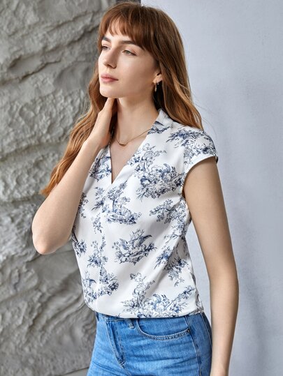 MOTF PREMIUM Top 100% sedoso de manga murciélago - Azul y blanco - Añade 11