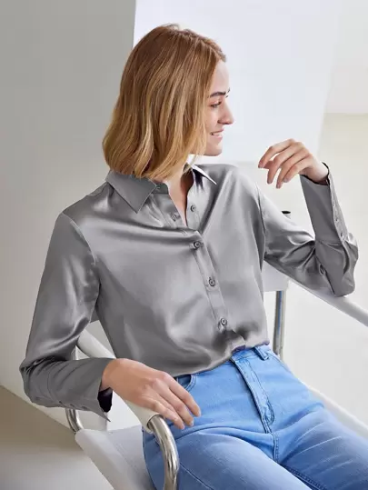 MOTF PREMIUM Camisa ajustada recta 100% sedosa - Gris - Añade 6