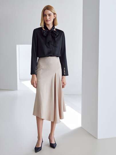 MOTF PREMIUM Top de cuello con cordón 100% sedoso - Negro - Añade 4