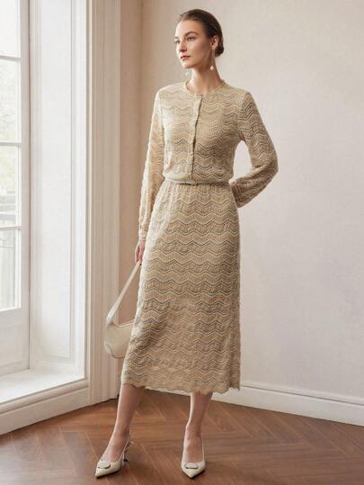 MOTF PREMIUM Falda recta con espalda dividida y patrón de chevron - Albaricoque - Añade 5