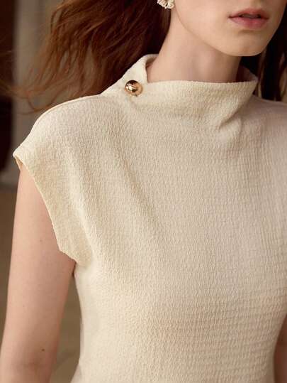 MOTF PREMIUM ELEGANTE CAMISETA DE CUELLO ALTO, CINTURA AJUSTADA Y TEXTURA ELÁSTICA - Amarillo claro - Añade 6