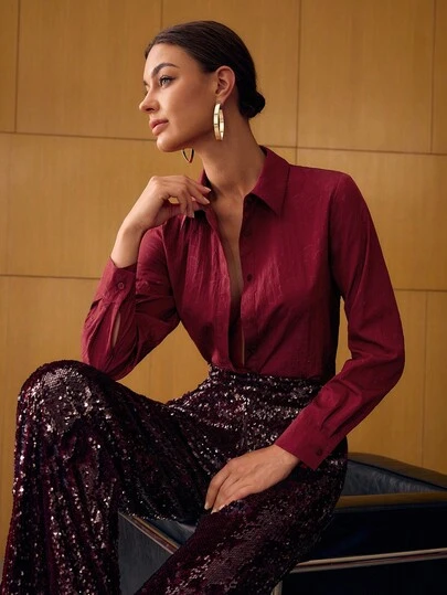 MOTF PREMIUM Camisa con botones de jacquard - Burdeos - Añade 4