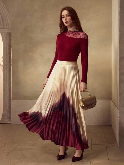 MOTF PREMIUM CAMISETA AJUSTADA DE PUNTO ACANALADO CON INSERTO DE ENCAJE Y RIBETE DE LECHUGA - Burdeos - Añade 2