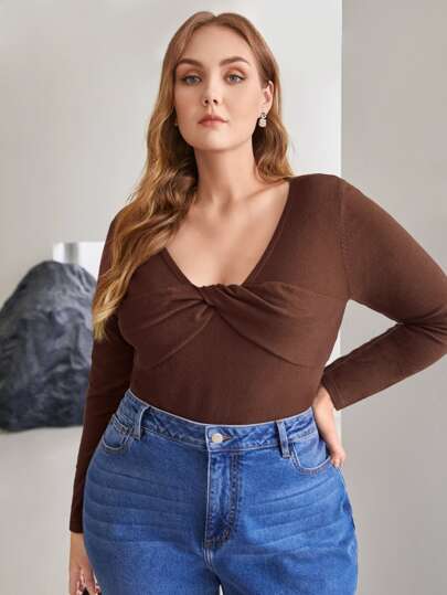 MOTF PREMIUM Jersey viscosa girante - Marrón Chocolate - Añade 7