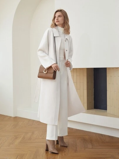 MOTF PREMIUM Abrigo mezcla de lana recto con cinturón - Blanco - Añade 1