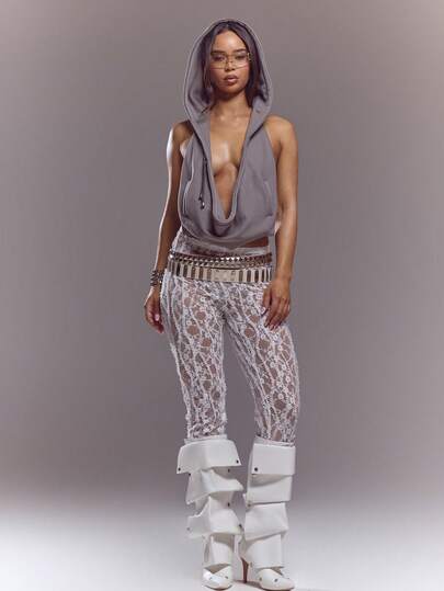 MUSERA Pantalones capri de encaje de talle medio, pantalones pedal, primavera verano, lindos y sexys, ropa de calle, salida nocturna, ballet - Blanco - Añade 4