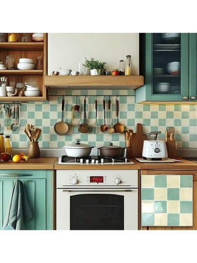 5/15 piezas de Adhesivo autoadhesivo de forma de cuadrícula a cuadros 3D de 10.5 pulgadas * 10.5 pulgadas, protector contra salpicaduras autoadhesivo para azulejos de cocina, resistente al agua, aceite y salpicaduras, adecuado para cocina, baño, pared, decoración del hogar ¡Disponible en varios colores! - verde menta - Añade 4