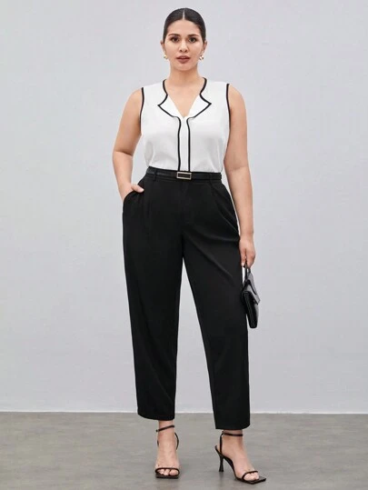 Maija Camiseta Sin Mangas De Talla Grande Para Mujer Con Borde De Color Contrastante - Blanco - Añade 1