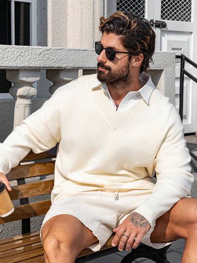 Manfinity Homme Suéter de punto holgado de unicolor versátil para hombre talla grande, otoño/invierno - Albaricoque - Añade 1