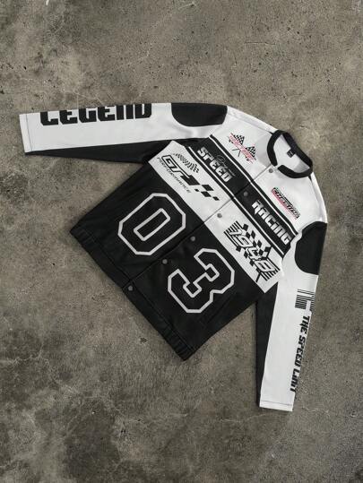 Manfinity EMRG Chaqueta de béisbol de manga larga con letra de bloque de color para hombre, chaqueta de carreras con letra para usar en primavera y otoño, regalo para amigos, esposo o novio - Multicolor - Añade 1