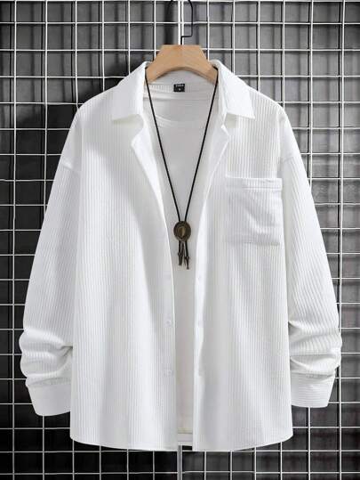 Manfinity Homme Hombres Chaqueta Suelta Con Bolsillo Delantero Unicolor Sin Camiseta - Blanco - Añade 1