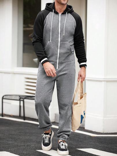 Manfinity Homme Mono casual de unicolor con panel frontal con cremallera y capucha de manga larga para hombre - Multicolor - Añade 1