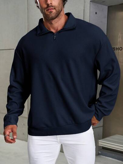 Manfinity Homme Sudadera casual con cremallera delantera de manga larga y unicolor para hombres de talla grande - azul real - Añade 4