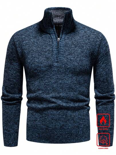 Manfinity Homme Suéter con cuello de pie y cremallera, de manga larga, informal y urbano, para hombres de tallas grandes, para otoño/invierno - Azul - Añade 3