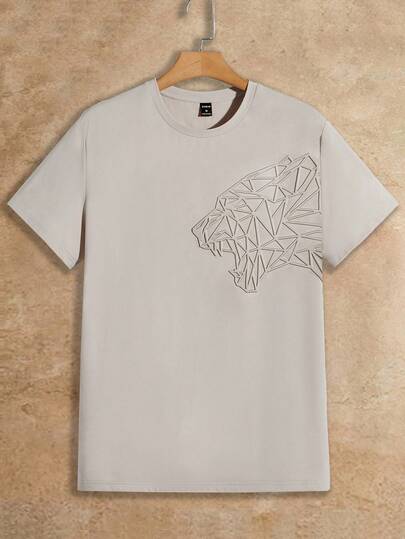 Manfinity NXTstreet Camisetas de hombre con corte ajustado, cuello redondo, manga corta, gráficos informales para salir en verano - Caqui - Añade 1