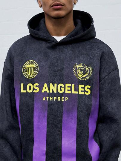 Manfinity VCAY Sudadera con capucha de corte holgado con estampado gráfico en inglés para hombre, para otoño e invierno - Gris Oscuro - Añade 2