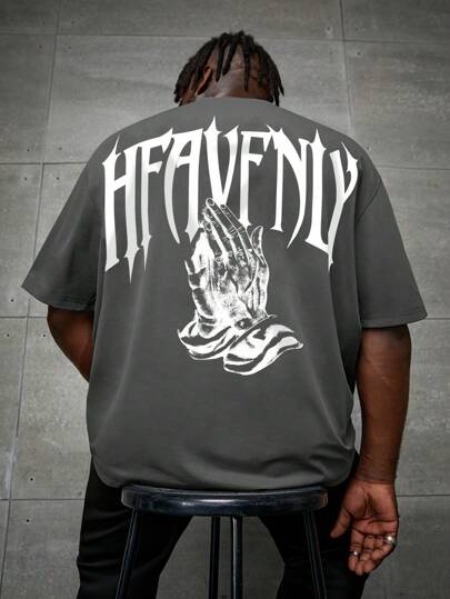 Manfinity RebelGame Camiseta de manga corta con letras y gráficos de mano de talla grande para hombre, para el verano - Gris - Añade 1