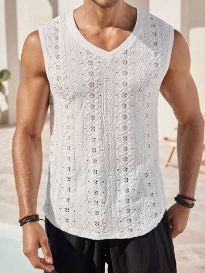 Manfinity RSRT Camiseta sin mangas cuello en V de unicolor para hombres, usado para uso diario casual - Blanco - Añade 4