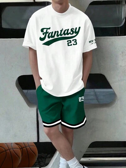 Aesthetic Post Conjunto De Dos Piezas De Camiseta De Manga Corta Y Pantalones Cortos Impresa Con Monograma Para Hombres - Multicolor - Añade 1