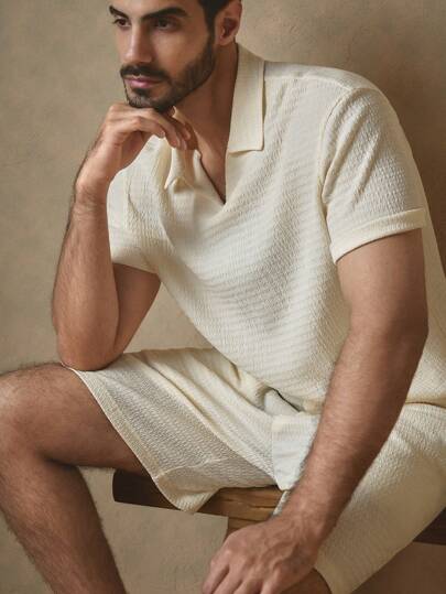 Manfinity VCAY 2 piezas Conjunto informal de traje tejido con cuello tipo polo ajustado, apto para el verano - Albaricoque - Añade 7