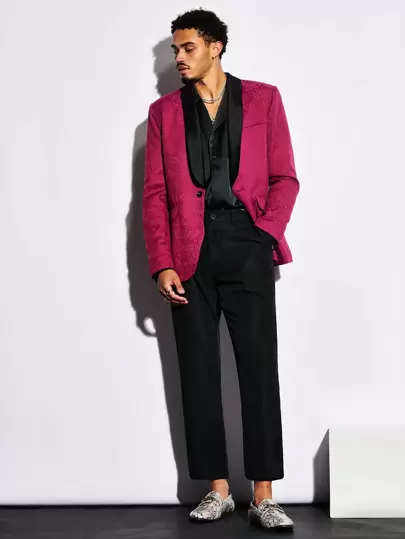 Manfinity VCAY Conjunto De Pantalones Y Blazer De Terciopelo Acolchado Con Cuello Chal Para Hombres - Multicolor - Añade 2