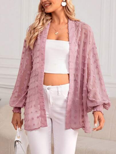 SHEIN Maternidad Abrigo de lunares de manga farol con parte delantera abierta - Rosa - Añade 1