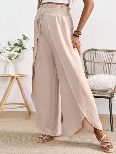 SHEIN Pantalones de pierna recta con cordón para maternidad, perfectos para vacaciones urbanas con cinturilla elástica - Albaricoque - Añade 5