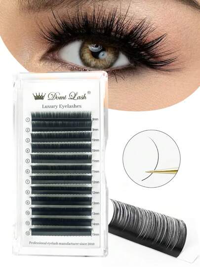 Pestañas individuales súper suaves en acabado mate negro, rizado LC, longitud de 8-15mm, 1 caja de 12 filas de extensiones de pestañas Camelias - LC - Añade 1