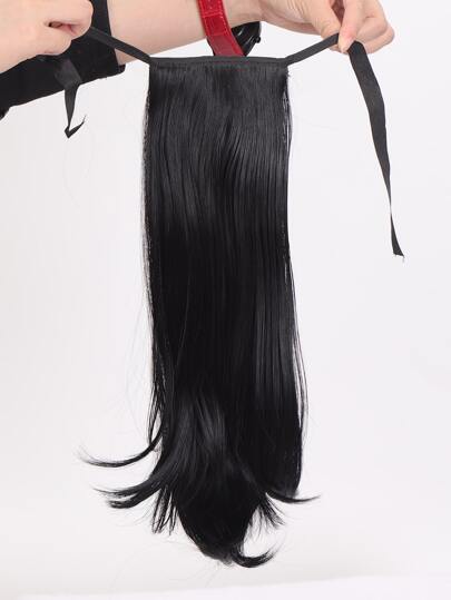 Extensión del pelo medio recto coleta sintético - Negro - Añade 4