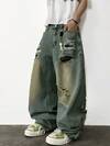 Jeans de corte recto y ajuste holgado, de cintura media, sin estiramiento, de estilo de moda callejera para hombres
