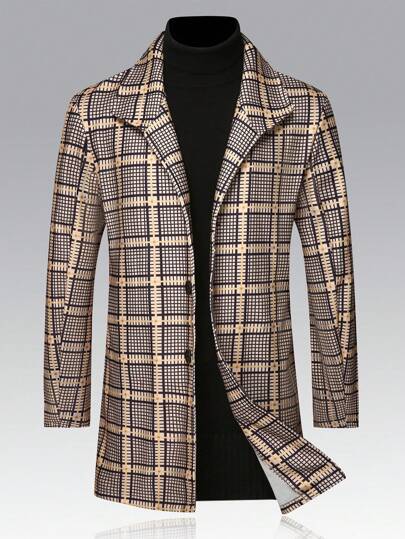 Manfinity Homme Abrigo informal de cuadros de tejido de color para hombres, otoño/invierno - Multicolor - Añade 3