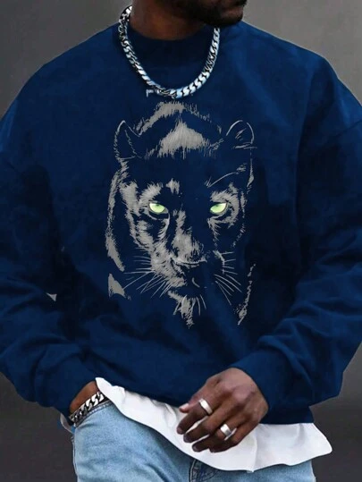 Sudadera suelta de estampado de leopardo casual para hombre, otoño/invierno - Azul - Añade 1