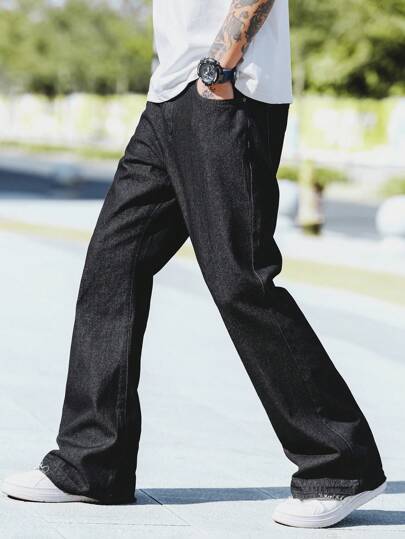 Manfinity Homme Jeans de corte recto con bolsillos para hombre - Negro - Añade 8