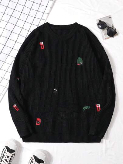 Manfinity AFTRDRK Jersey casual de cuello redondo de manga larga con detalles de estampado para hombre - Negro - Añade 4