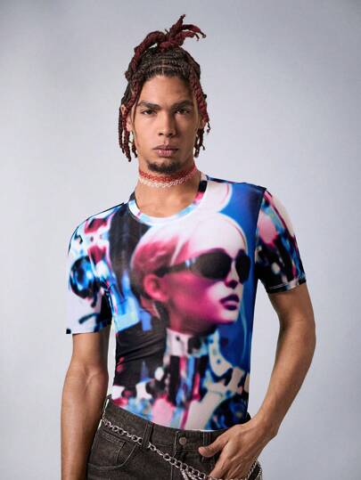 FeverCity Camiseta de tejido de malla de impresión digital para hombre, verano - Multicolor - Añade 1