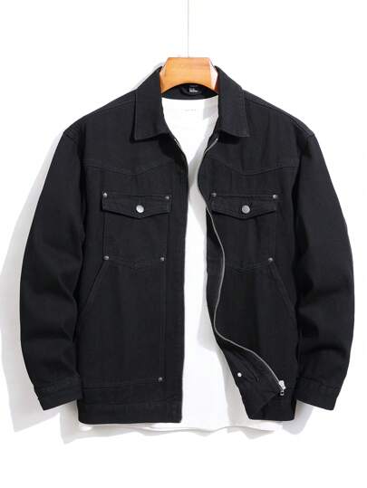 Manfinity Homme Chamarra Denim De Hombre De Corte Amplio Con Puños Reversibles Y Bolsillos Con Cierre - Negro - Añade 4